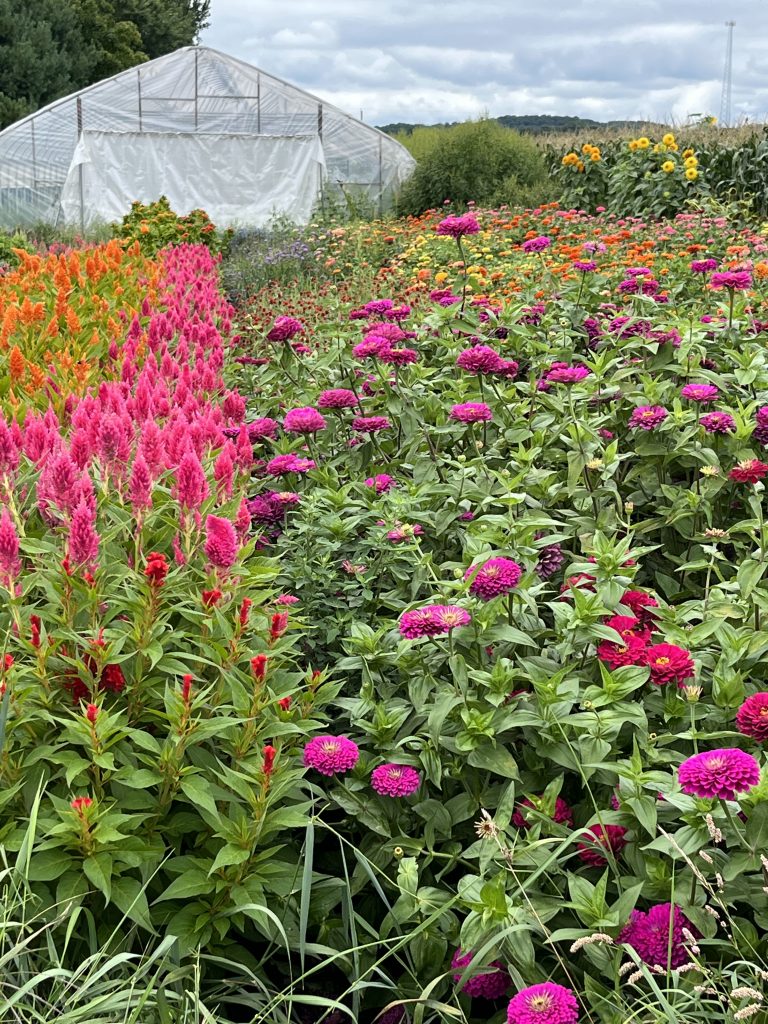 zinnias, sunflowers, snap dragons, celosia, cosmos, gomphrena, and scabiosa for starters- more to come as I peruse the seed catalogs.
