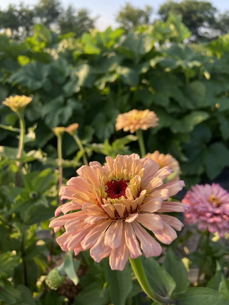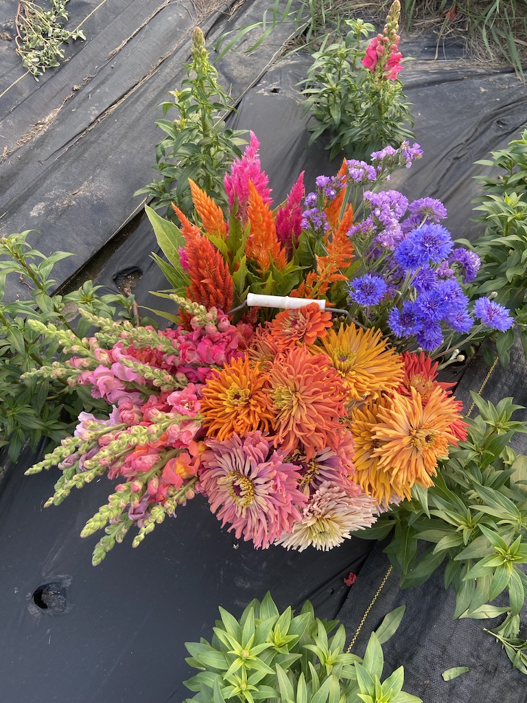 I want to share my favorite things with you. Of course delicious, fresh vegetables like giant sweet potatoes, butter yellow summer squash, and chin-dripping BLT tomatoes have high ranking on the this list, but one of my secret, most favorite things of all time is walking slowly through my fields at dusk, picking flowers. It’s the perfect antidote to a brain filled day managing a small vegetable farm. I invite you to join in the color, calm, creativity, peacefulness, joy and connection of the Orange Cat Flower Patch.